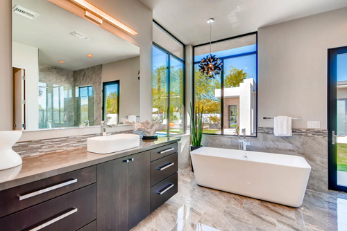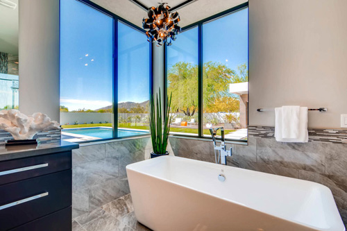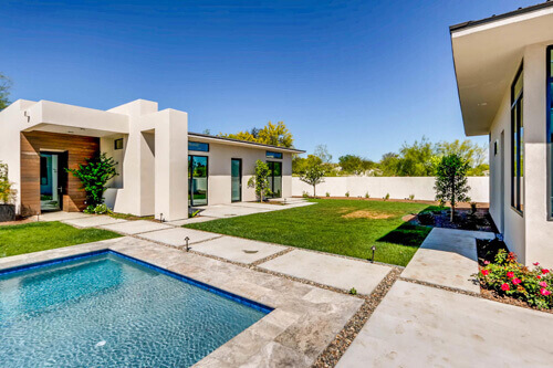 Architecturally & Aesthetically pleasing Home nestled on over an acre of land with breathtaking Camelback Mountain Views. Opulent soft Contemporary Style Home with high-end finishes, lots of natural light, unique fireplace, upgraded lighting/ceiling fans, and fabulous surprises throughout. State of the Art Automated Smart Home with Bonus Guest House reflecting the main home elements. Gorgeous tile/wood floors, contemporary palette, wall of retractable doors to patio, window shades, and private office. Stunning gourmet kitchen features center island, granite counters, breakfast bar, glass tiled backsplash, wine cooler, Sub-Wolf appliances, and custom European cabinetry with stylish hardware. Fine Luxury living inside & out. Formal dining room with wet bar. Custom bathrooms boasts designer fixtures, sinks, tile, and lighting. Amazing loft area with endless possibilities (2nd Master with living room). Three Sets of Washer/Dryers. Grand master retreat offers sitting area, plush carpet, patio access, and spa-like private en suite. Generous size bedrooms, ample closets, and 5.5 baths. Peaceful & serene backyard setting with lush green landscape, sparkling pool, dining patio, and Majestic Mountain Views. RV Gate. See it...Love it...Live it!!