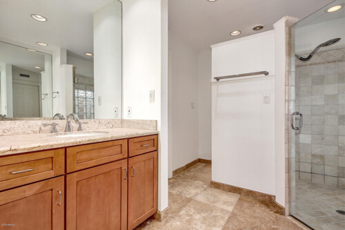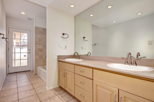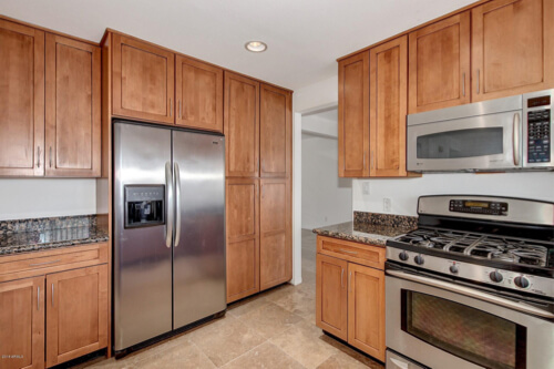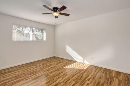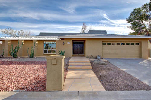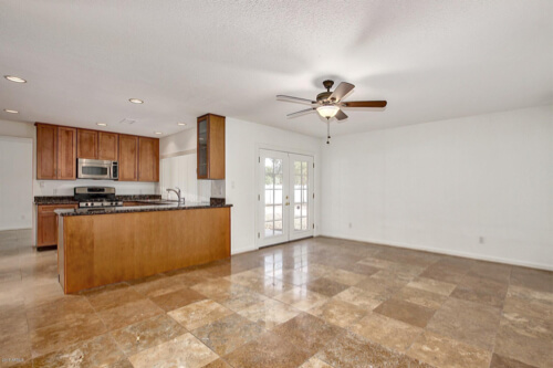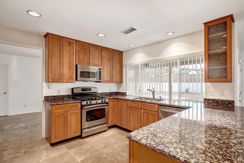 MUST SEE - Beautiful single level home in highly sought after Heritage Heights community. Custom flooring throughout, travertine and wood. Eat in kitchen is complete with a plethora of custom cabinets, granite counters, and stainless steel appliances. Master suite has ceiling fan and private exit to backyard. 3/4 bathroom with his + her vanities. Spacious walk in closet! Garage has epoxy flooring and washer/dryer. Huge backyard features an extended covered patio with new desert landscaping and plenty of room for entertaining. Dual pane windows throughout. Newly painted inside and out. New Irrigation installed. This home is sure to go quickly, so come see it today!